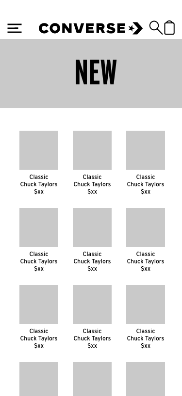 During the Design and Prototyping phase, I refined the overall design. I chose to use a black and white color scheme for text and buttons, as that is what Converse currently uses. I also added states to let the user know that they’ve created an account and that they’ve successfully completed their order.